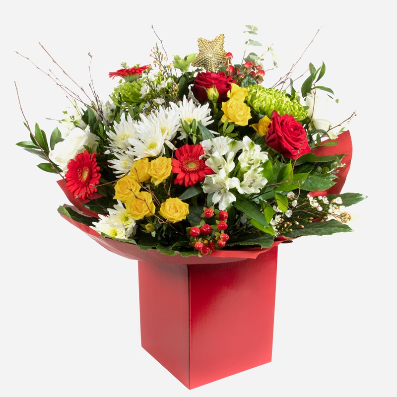 A joyful mix of seasonal flowers and foliage, perfect for surprising someone special this Christmas.